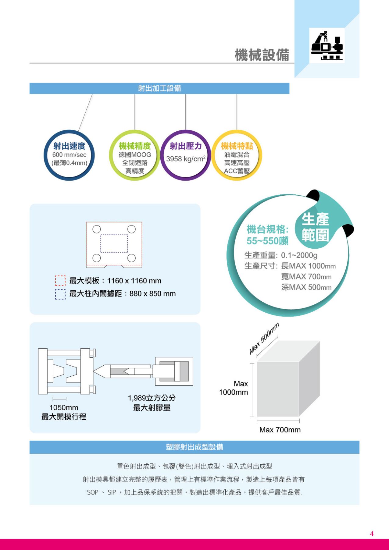 3.「設計」、「開模」、「射出」、「加工」一應俱全。